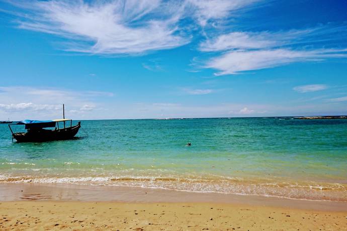 Com acesso apenas em veículos 4x4, quadriciclo ou barco, a Praia de Garapuá é emoldurada por coqueiros em uma pequena baía de águas cristalinas e mornas.