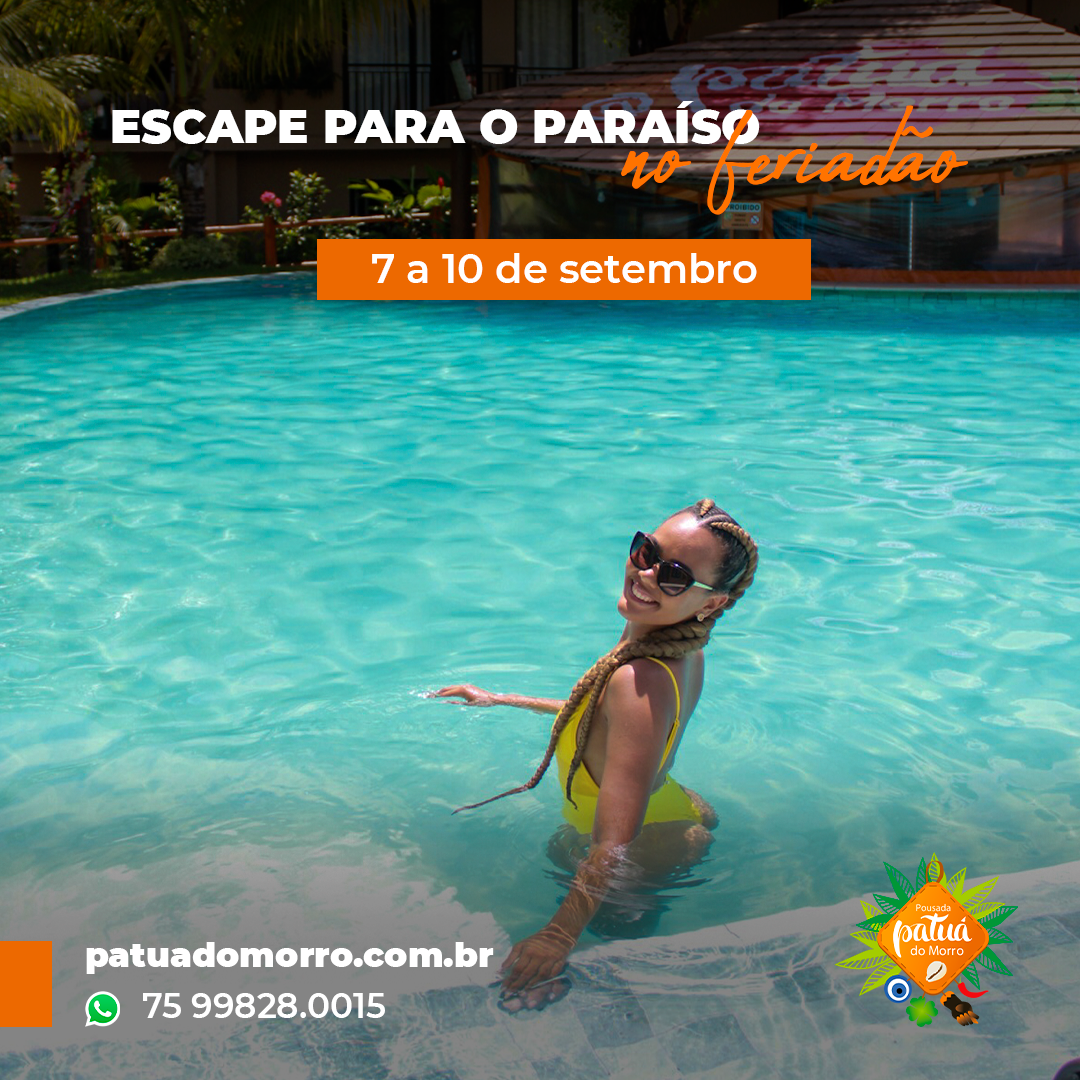 Anote as datas de 07 a 10 de setembro. Faça sua reserva agora através do nosso sistema online. Não perca a oportunidade de se hospedar na Pousada Patuá do Morro e ter uma estada perfeita em Morro de São Paulo!